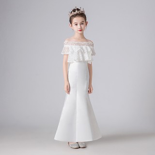 Princess Fish Tail Dress Birthday Party White Dress Wedding Bridesmaid Flower Girl Gown Piano Performance Host Dress Slim Dancing Dress Shopee Malaysia